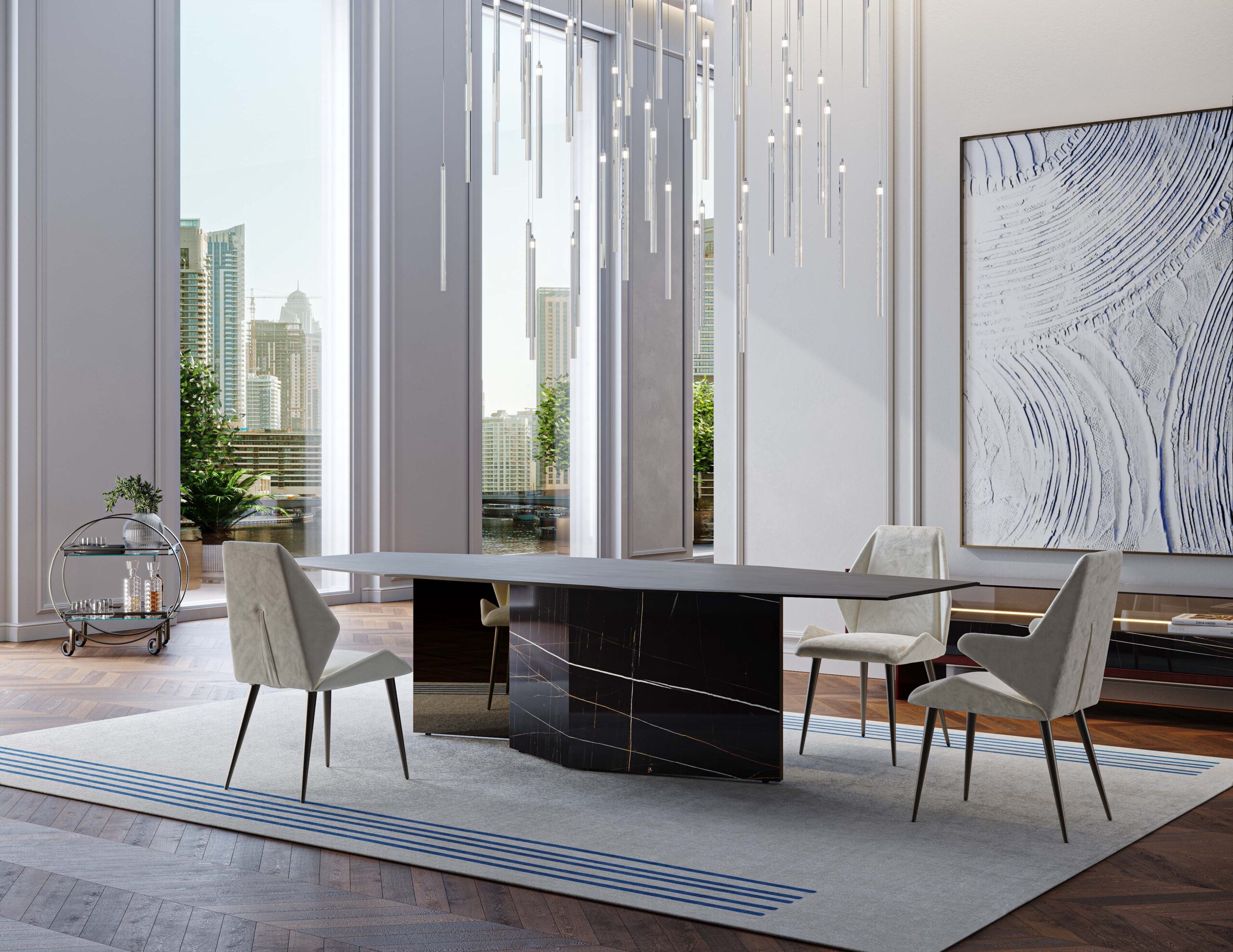 Low buffet with wood structure. Metal feet in Bronze finish (100M). 33 cm high doors in Marmoreflex or Legnoreflex.