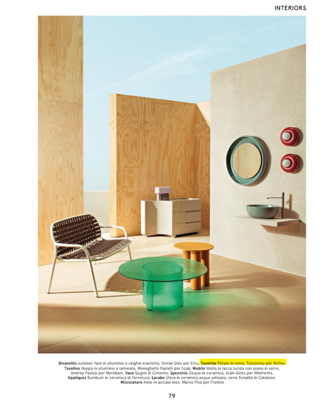 Scopri i tavolini Petalo nella nuova variante Acqua e il nuovo sistema Wally su Living di Luglio 2024.