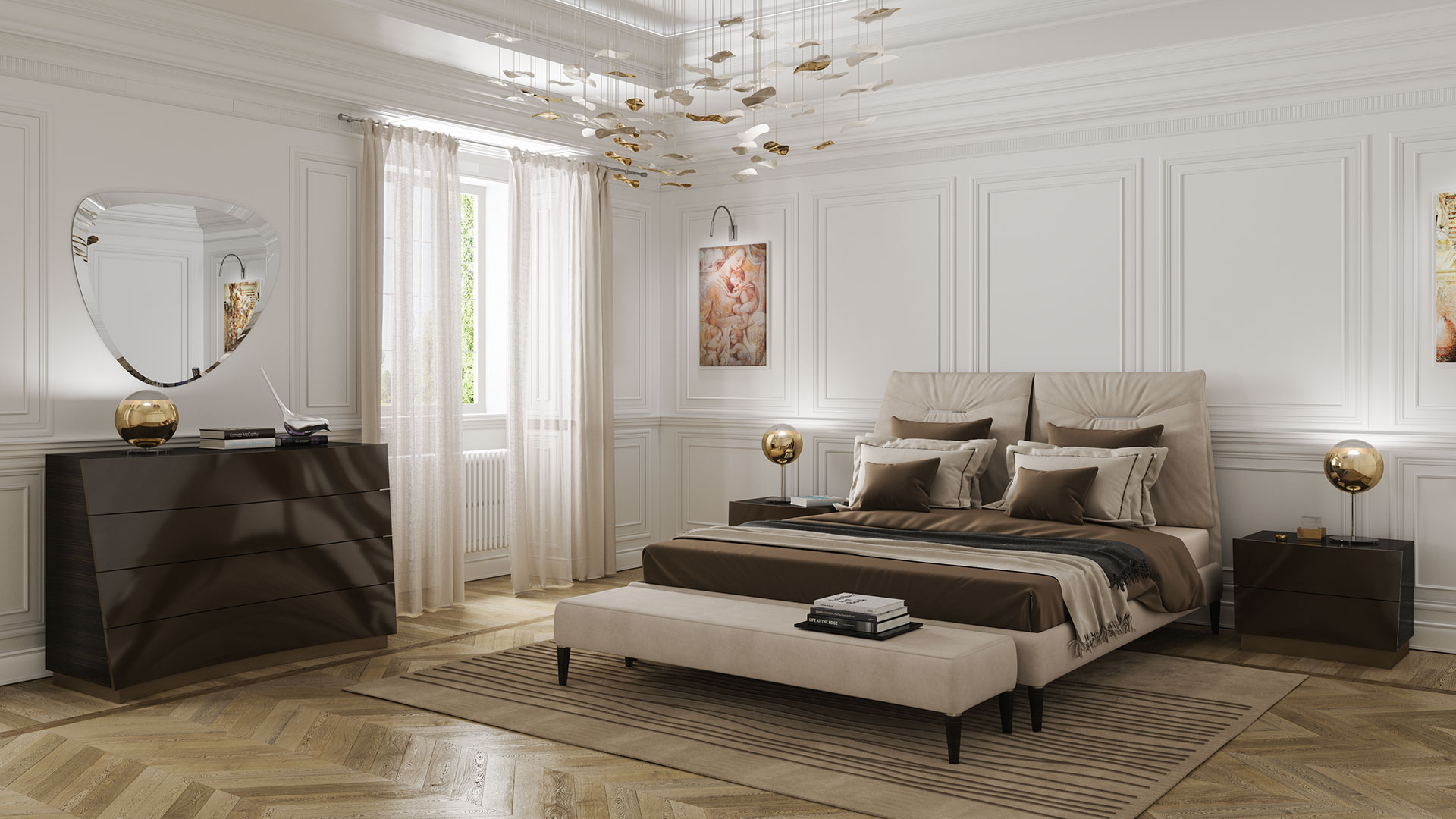 Letto con struttura in legno e testiere imbottite dotate di meccanismo di regolazione multiposizione. Il progetto è completato da dettagli in acciaio lucido e da piedini in legno che alleggeriscono visivamente la base. Rivestimento disponibile in pelle o tessuto. Rete ortopedica non compresa.