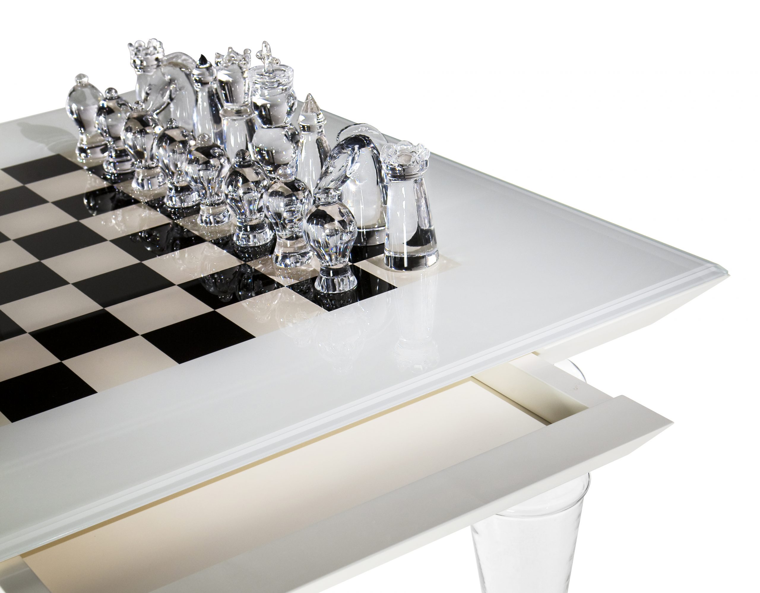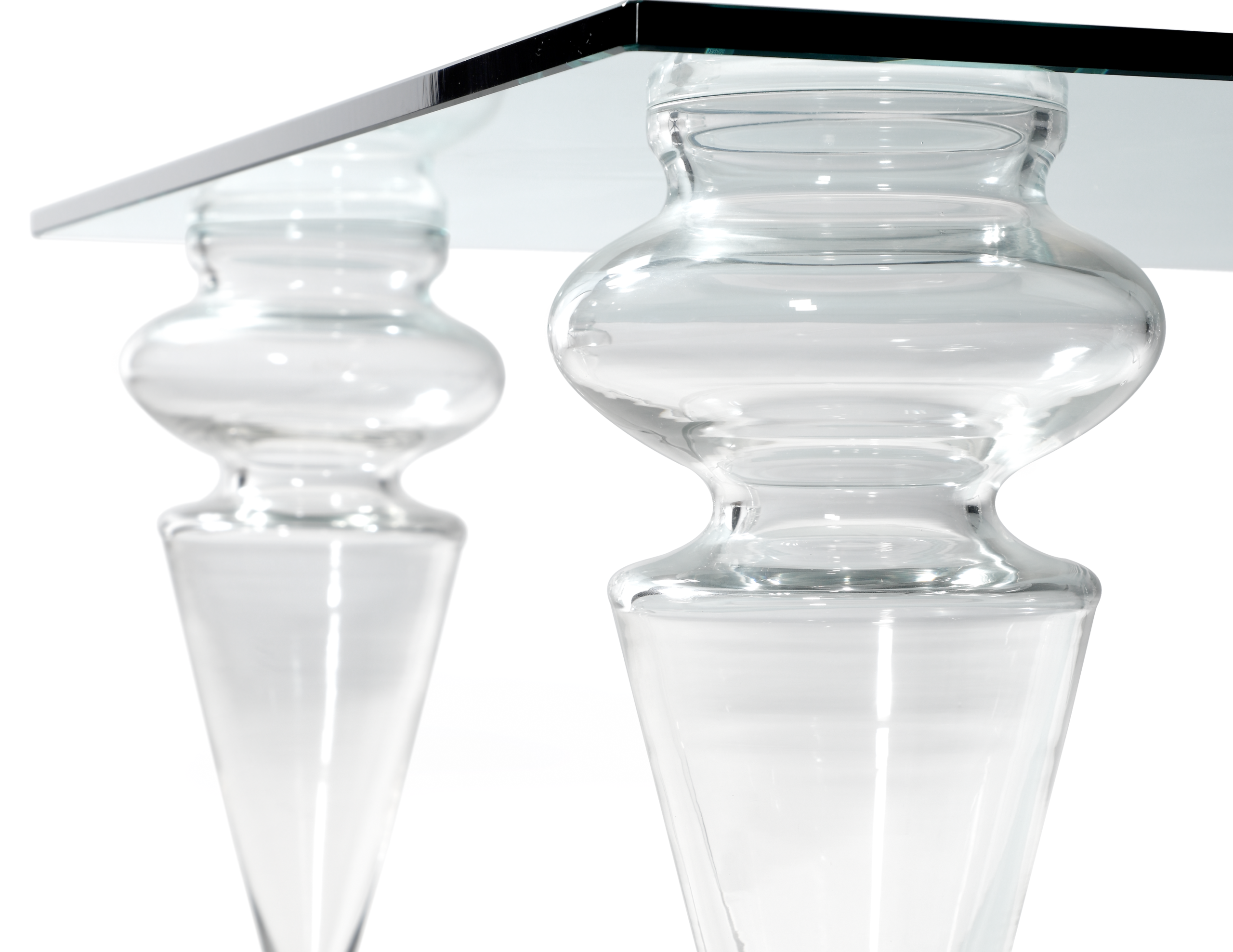 Tavolo da biliardo con struttura in legno laccato e piano in vetro rivestito in panno, completato da gambe in vetro di Murano.