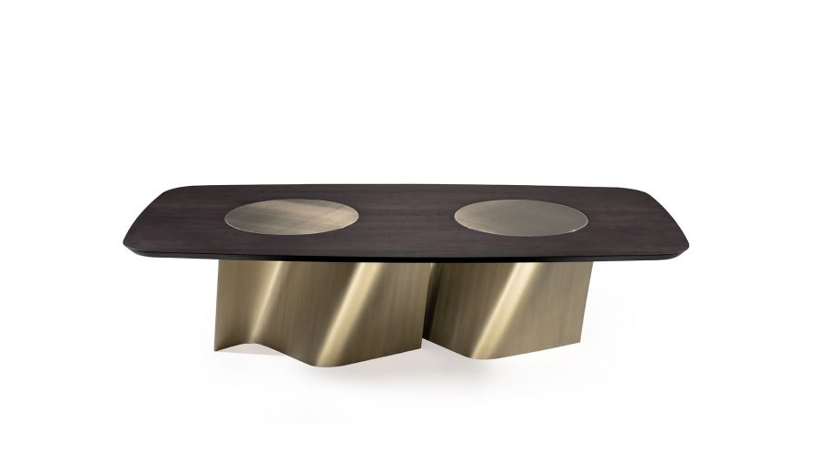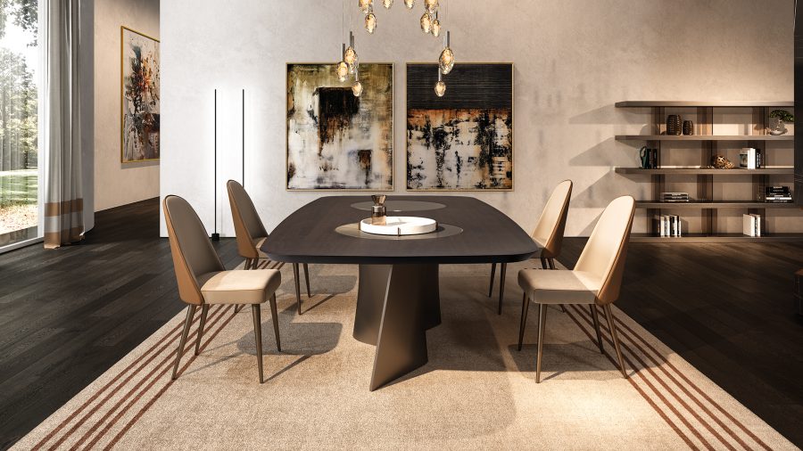 Versione con piano Bevel Wood con 2 Lazy Susan integrati in vetro Mesh o in Marmoreflex.