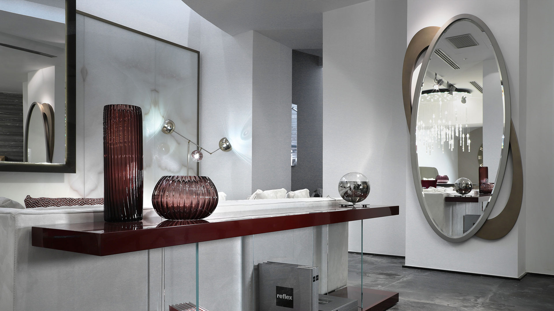 Specchio ovale dal segno pulito ed elegante, pensato come elemento architettonico flessibile. La forma allungata e la possibilità di installazione sia verticale che orizzontale lo rendono adatto a diversi contesti, dal living alla zona notte fino ad ambienti contract. La cornice in legno con finiture metalliche introduce un contrasto controllato tra materia naturale e riflesso.