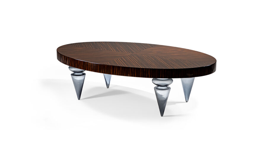 Variante tavolino da salotto piano ellittico in ebano lucido a macchia aperta spessore 80mm